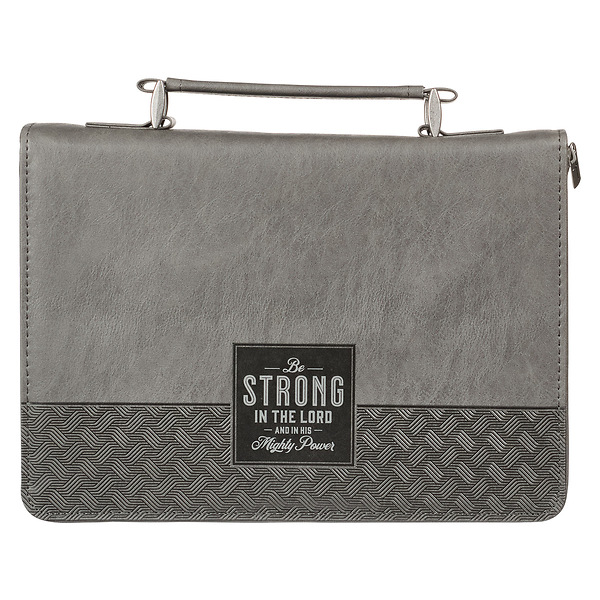 Be Strong in the Lord Gray and Black Faux Leather Classic Bible Cover Extra Large