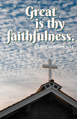 Broadman Church Supplies General Worship Bulletin is adorned with a beautiful 4-color image and is designed for use during a General Worship celebration service any time of the year. The featured verbiage is Lamentations 3:23 from the KJV translation of the Bible. All