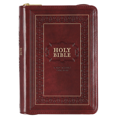 KJV Large Print Compact Bible Burgundy with Zipper Faux Leather